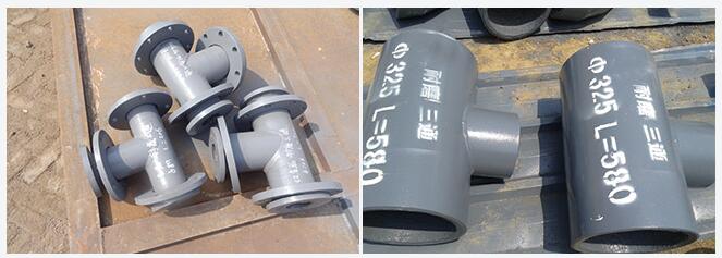 双金属耐磨三通内衬超强耐磨合金材料,通过离心浇铸,形成牢固的冶金结合体。弯管采用真空消失模浇铸工艺。双金属耐磨三通既有较好的耐磨性、耐高温性和耐冲击性能,又具有较好的韧性,抗机械热冲击性能优良,可悍性能好,易安装。已经普通应用于电力、冶金、石油化工、建材等行业。该产品与其它三通相比,使用寿命长,投资成本经济。